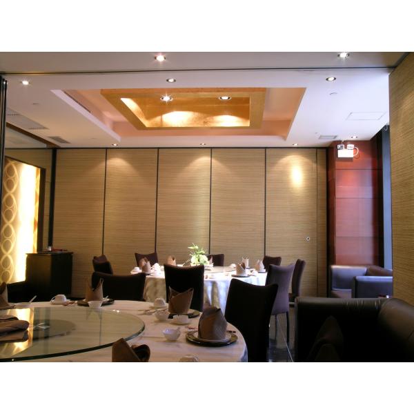 Hotel on the hanging rail activities partition products on the hotel hanging rails off the general framework of the aluminum frame material processing and production, internal partition expansion board, suitable for high-end hotel private rooms, banquet halls, conference rooms, showrooms, mufti-function Hall and so on. The sliding door base board is a MDF board or glass magnesium board. The decorative surface can be leather (cloth art) hard bag, soft bag, wallpaper, color steel veneer, hollow veneer and so on.